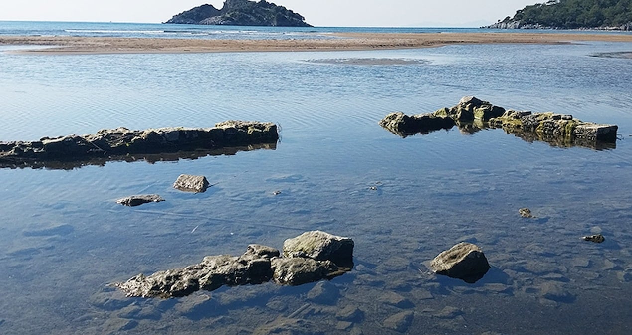 Muğla’da denizin çekilmesiyle tarihi gümrük binası ortaya çıktı