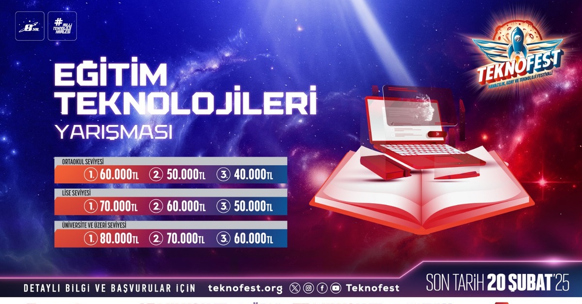 Veri Analizi ve İzleme, Dijital Eğitim Materyalleri ve Yapay Zekâ, Yeni Teknolojileri ve Geleceğin Eğitim Yaklaşımları ve Eğitim Yönetim Sistemlerine kadar geniş bir yelpazede, öğrenme süreçlerini daha verimli, daha etkili ve kalıcı hale getiren projeler jüri tarafından değerlendirmeye alınacak. Ortaokul seviyesinden mezun seviyesine kadar öğrenci ve profesyoneller 20 Şubat tarihine kadar yarışma başvurusunu gerçekleştirebilecek.